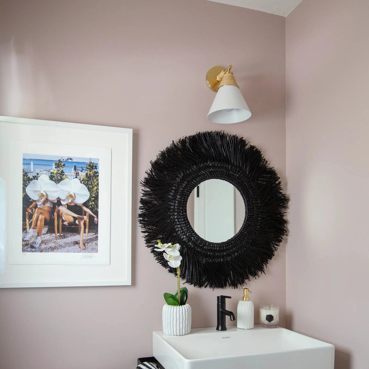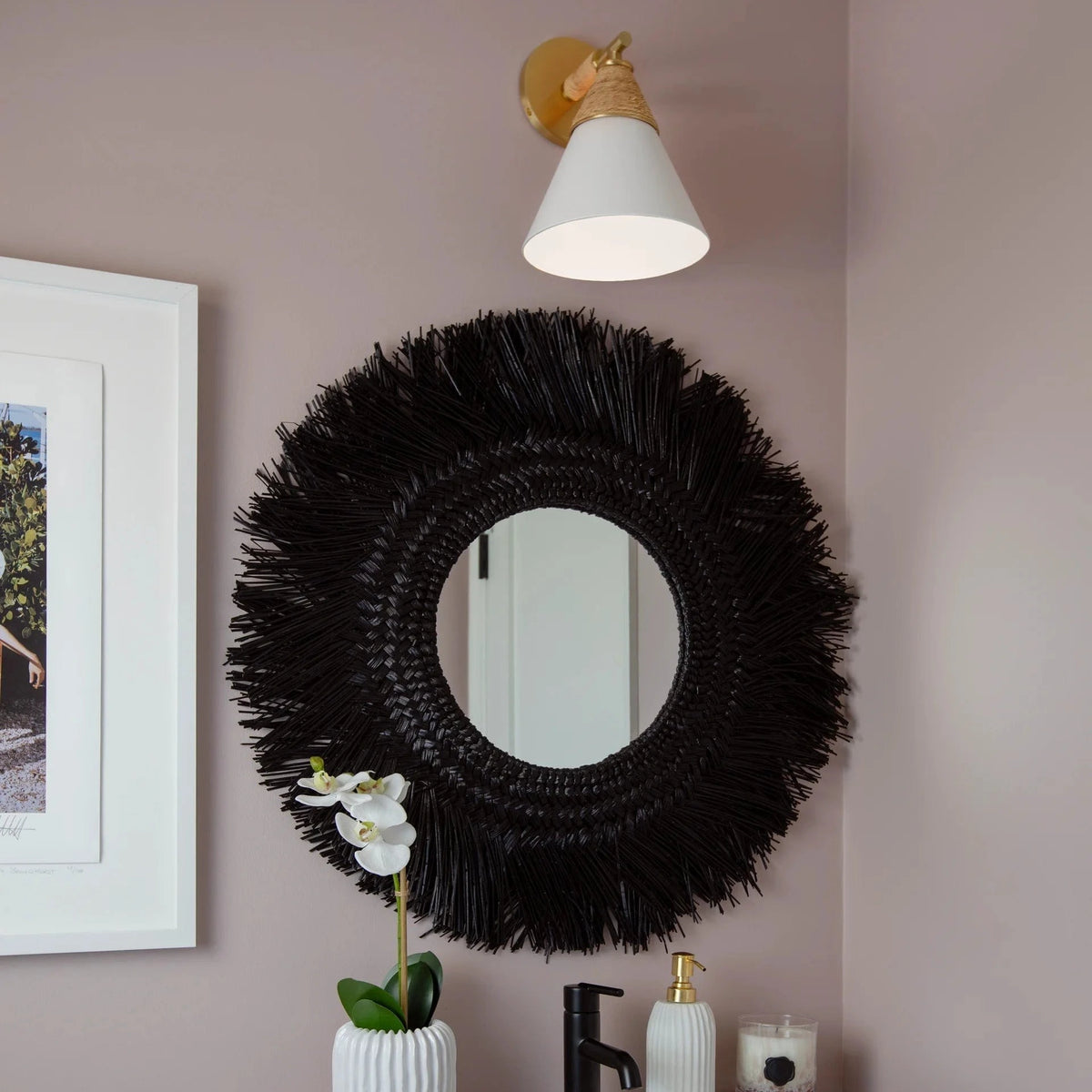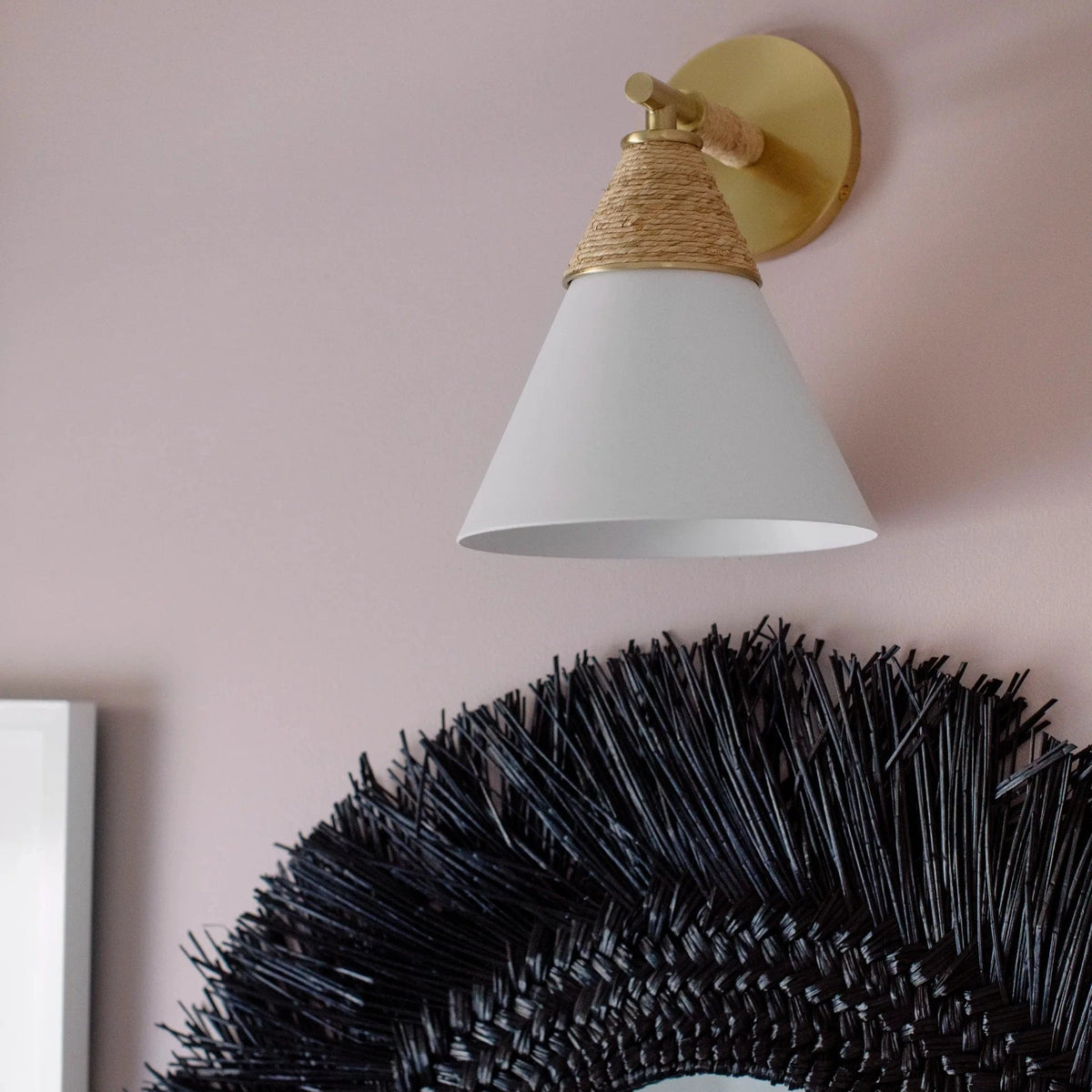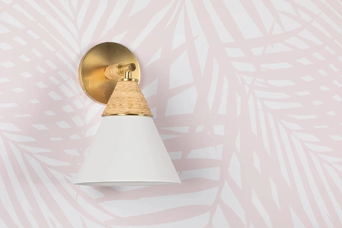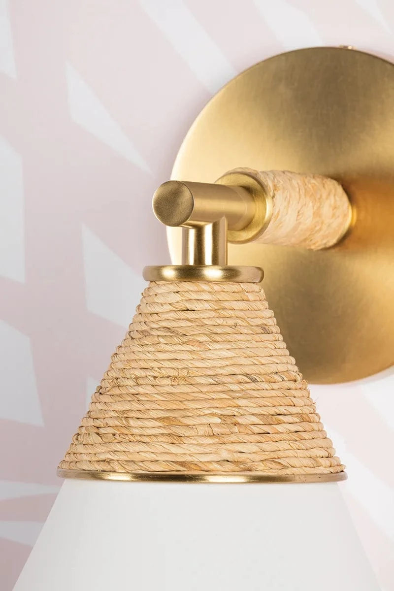 A classic cone shape with coastal flair, Mica features a rattan-wrapped, textured white shade accented by beautiful Aged Brass for a casual yet sophisticated aesthetic. Add personality to a powder room with sconces, or highlight the heart of the home with a pair of pendants over your kitchen island. Part of our Megan Molten x Mitzi Tastemakers collection.