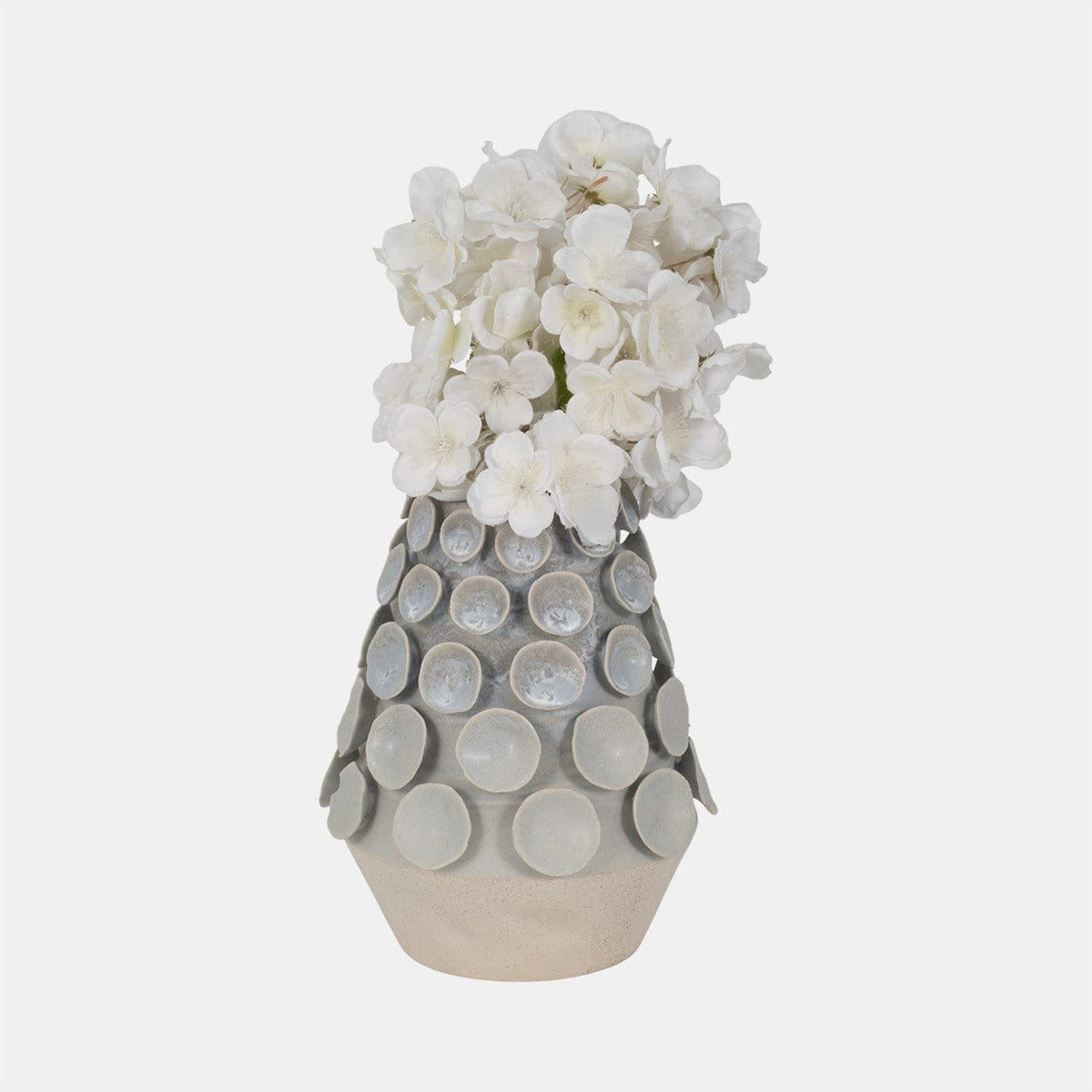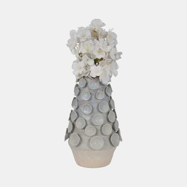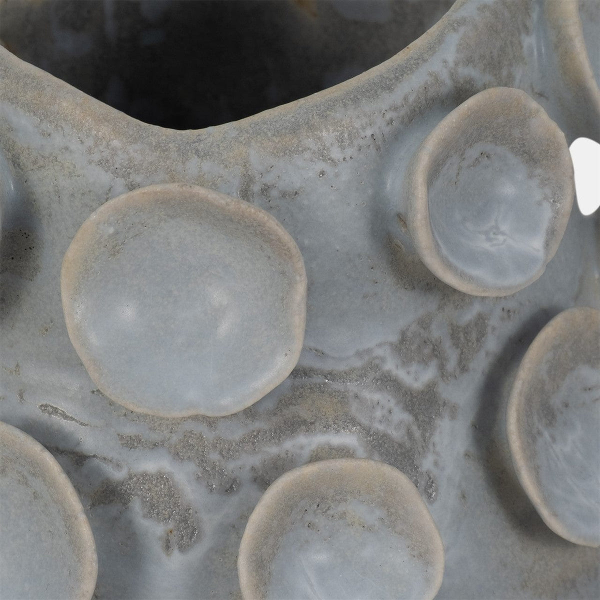 Elevate your decor with our Coral Applique Vase. Expertly crafted from ceramic, this vase boasts intricate coral appliques in a stunning blue and ivory finish. Accentuate your space with this timeless piece, perfect for adding a touch of sophistication to any room.