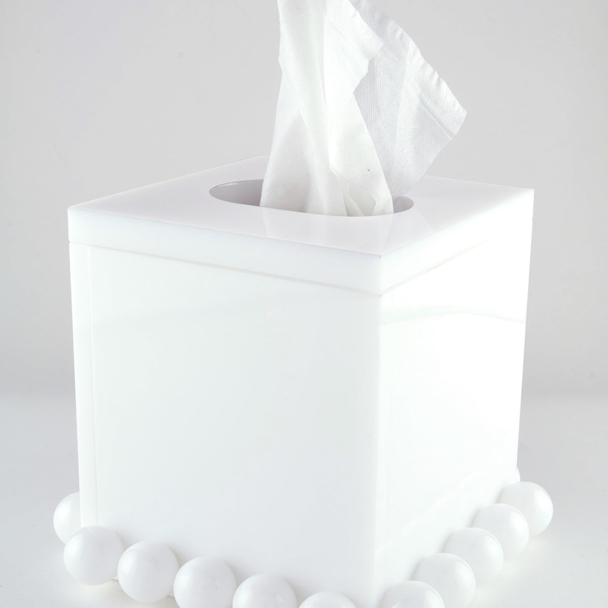 Elevate any space with the stylish Lucite Tissue Box with Lid in White Bubble Design. The sleek white design adds a touch of sophistication to any room, while the unique bubble design along the bottom adds a modern twist. Keep your tissues in style with this must-have accessory.
