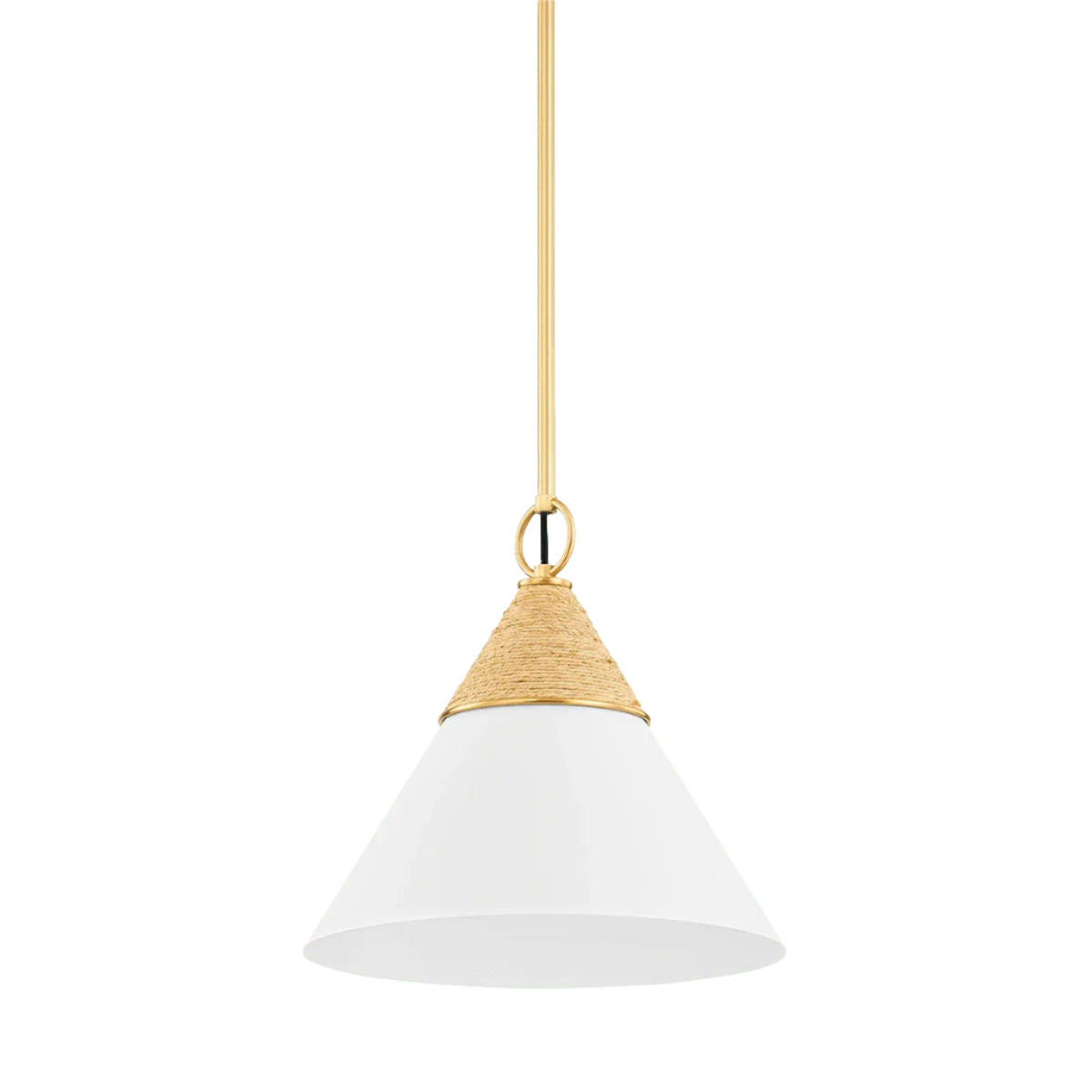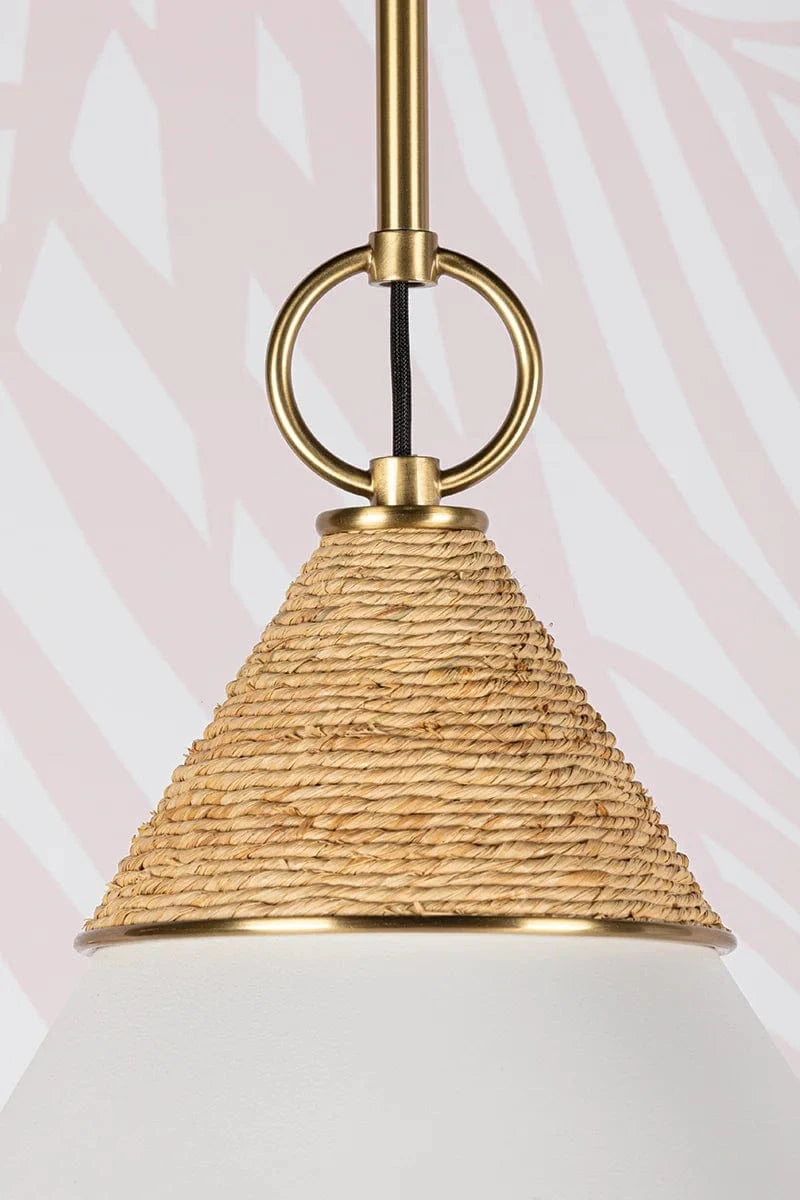 A classic cone shape with coastal flair, Mica features a rattan-wrapped, textured white shade accented by beautiful Aged Brass for a casual yet sophisticated aesthetic. Add personality to a powder room with sconces, or highlight the heart of the home with a pair of pendants over your kitchen island. Part of our Megan Molten x Mitzi Tastemakers collection.