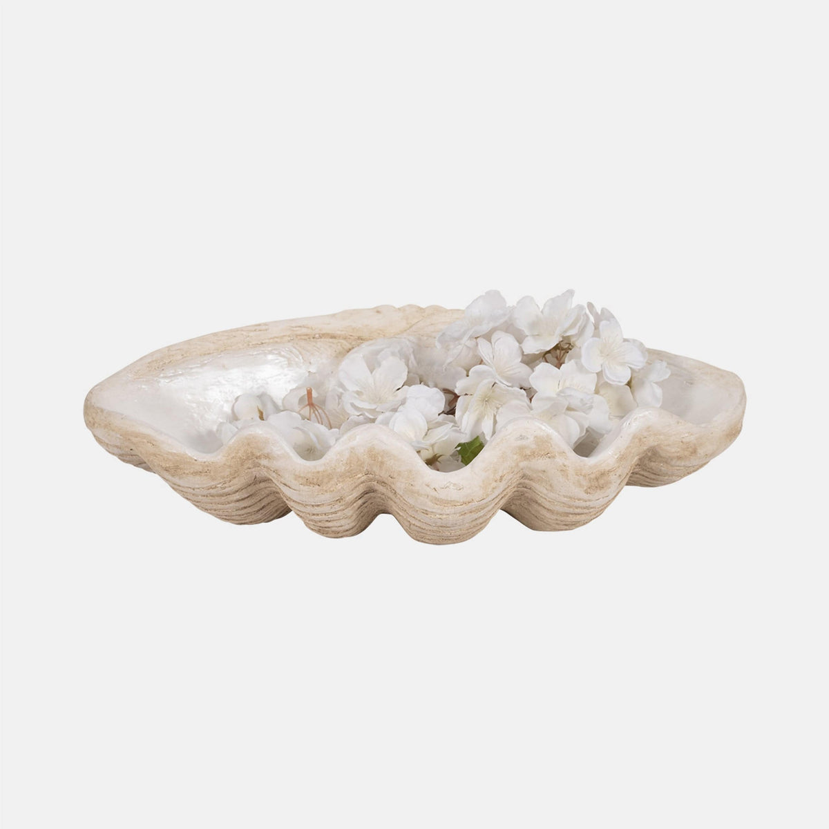 Add a touch of elegance to your home decor with our Pearlized Shell Bowl. Crafted from stunning shells, this coffee table decor piece is sure to impress with its iridescent sheen. Elevate your space with this beautiful and unique addition. Available in two sizes.