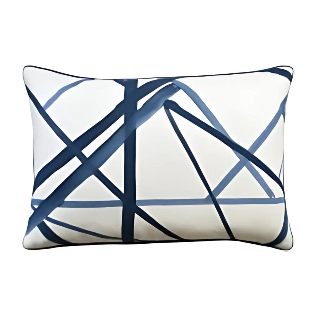 The Vibe pillow features geometric lines creating an interesting look in any space. Pattern placement may vary from photo and from pillow to pillow due to the print and random cut of fabric.